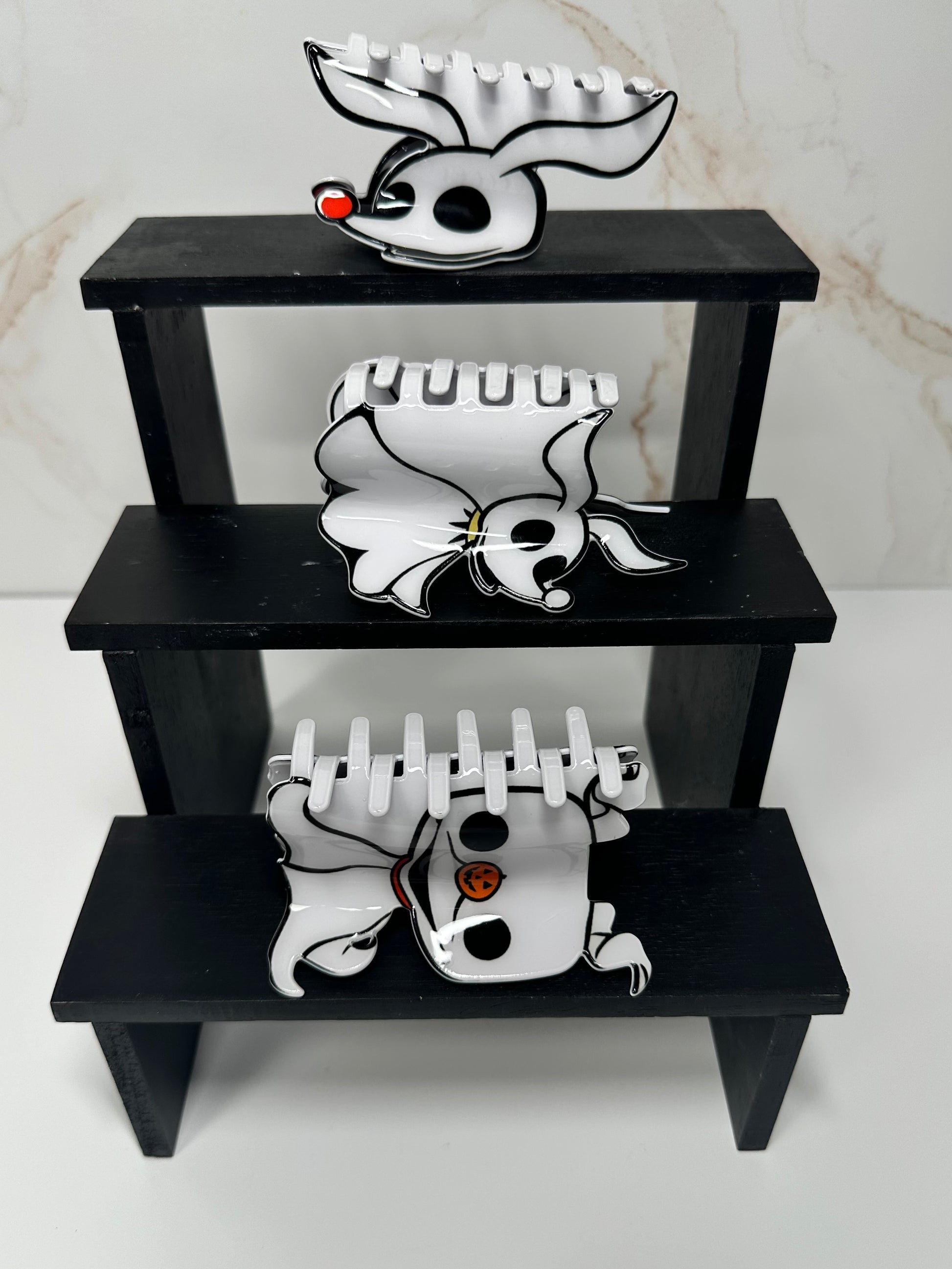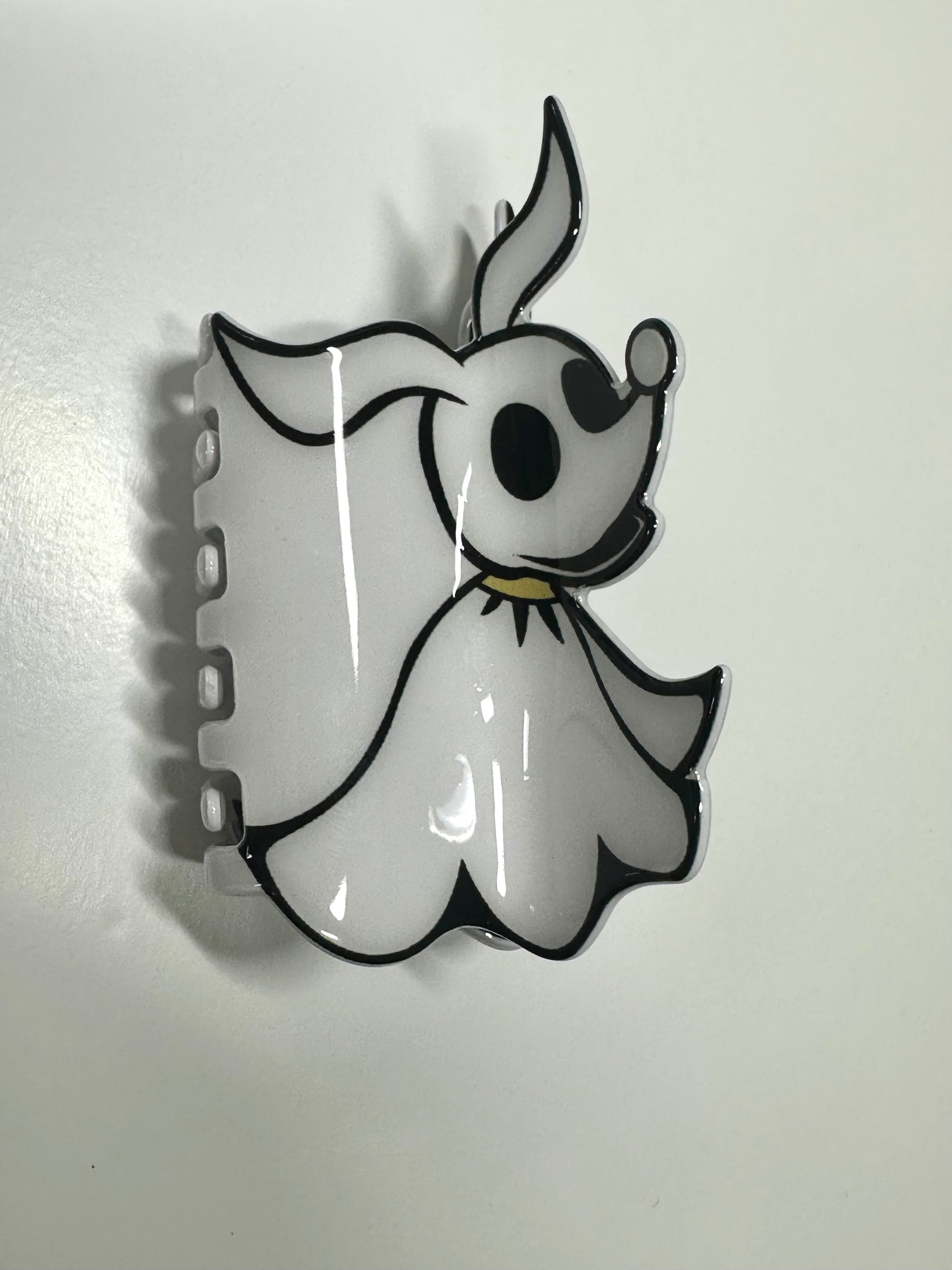 Elevate your Halloween hairstyle with our Nightmare Before Christmas Zero hair clip. Expertly designed with attention to detail, this hair clip features Zero's signature ghostly appearance. Made to hold your hair securely while adding a touch of spooky style to any look.
